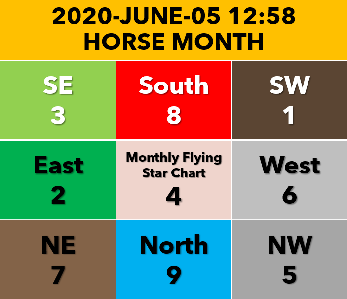 The Horse month will arrive on June 5th after 12:58pm. The illness star 2 will be arriving at the East sector. The arrival of this negative illness energy, plus the Yearly Calamity 5 Yellow Star, will further trigger the undesirable illnesses for the residents if the following events happen: