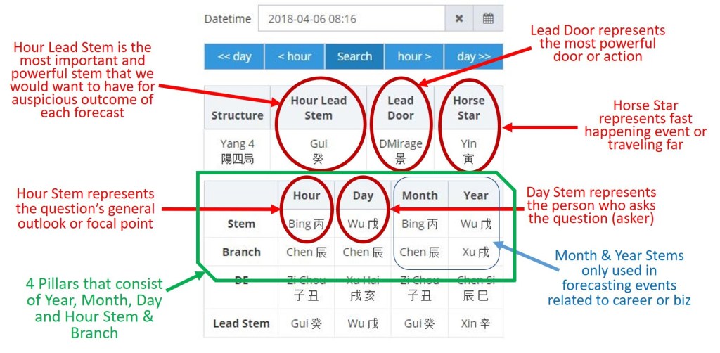 The client wanted to know whether the existing candidate is the right fit for the current vacancy of his company. The QMDJ HOur Chart was plotted on the time of question raised: To understand how to read this chart, please go to this link of “How to Read the QMDJ Hour Chart”